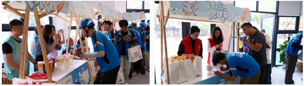 在上城区四季青街道的区新就业群体党群服务中心的带领下开展活动,为外卖员提供夏季防暑降温物资包200份。