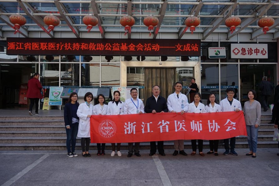 2017年10月26日,浙江省医联医疗扶持和救助公益基金会联合浙江省医师协会,共同组织浙医一院、浙医二院、省妇保、省儿保等多名专家到温州文成县开展医疗扶持和救助活动。