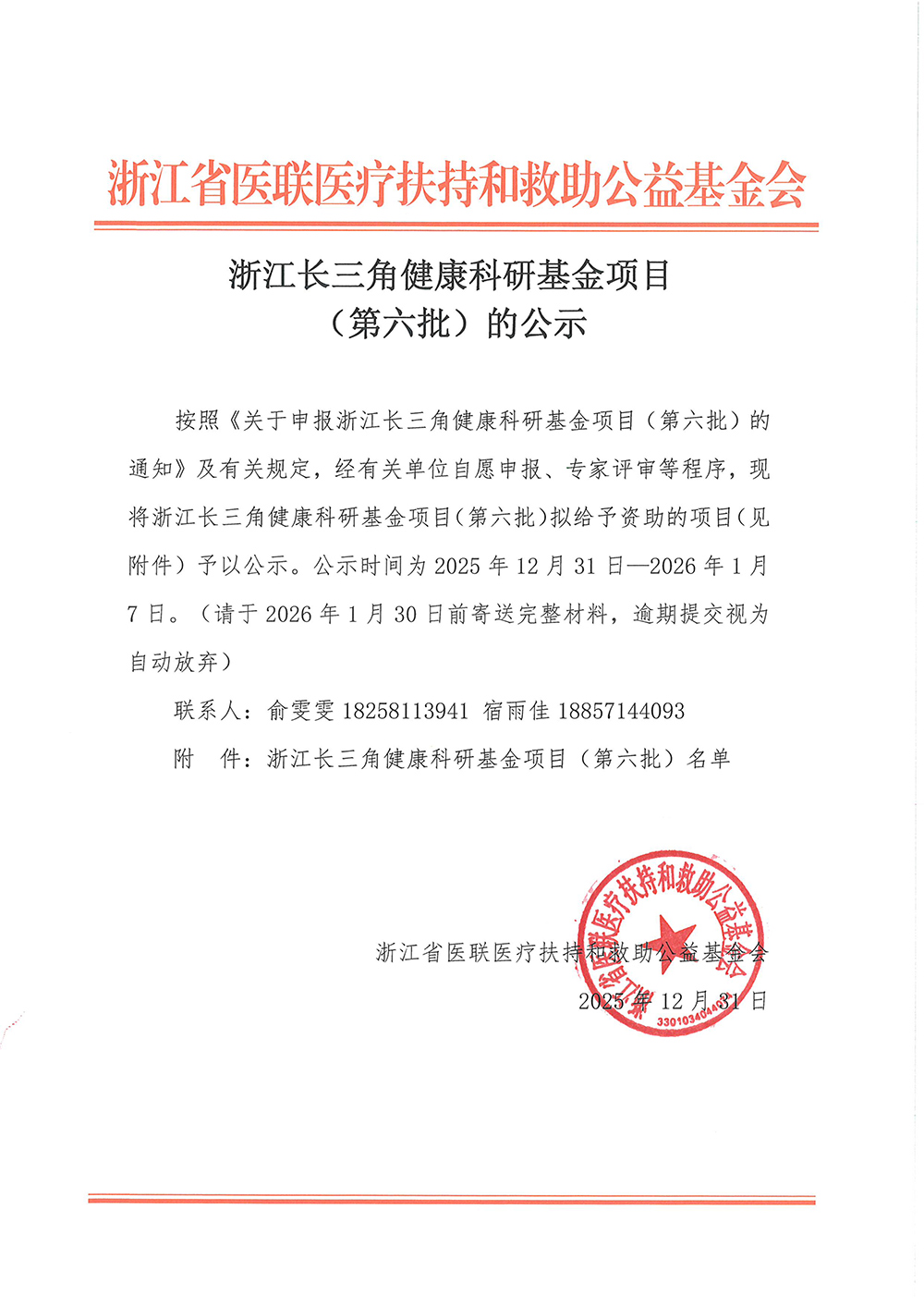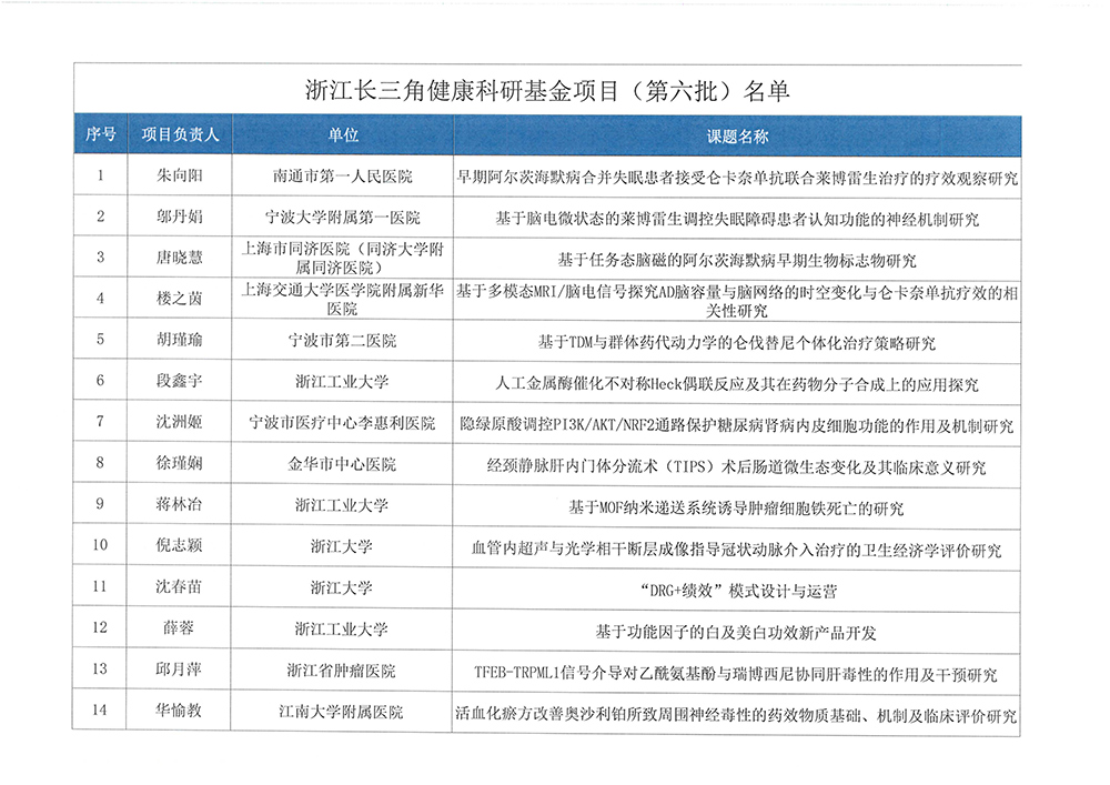 浙江长三角健康科研基金项目(第六批)的公示.pdf