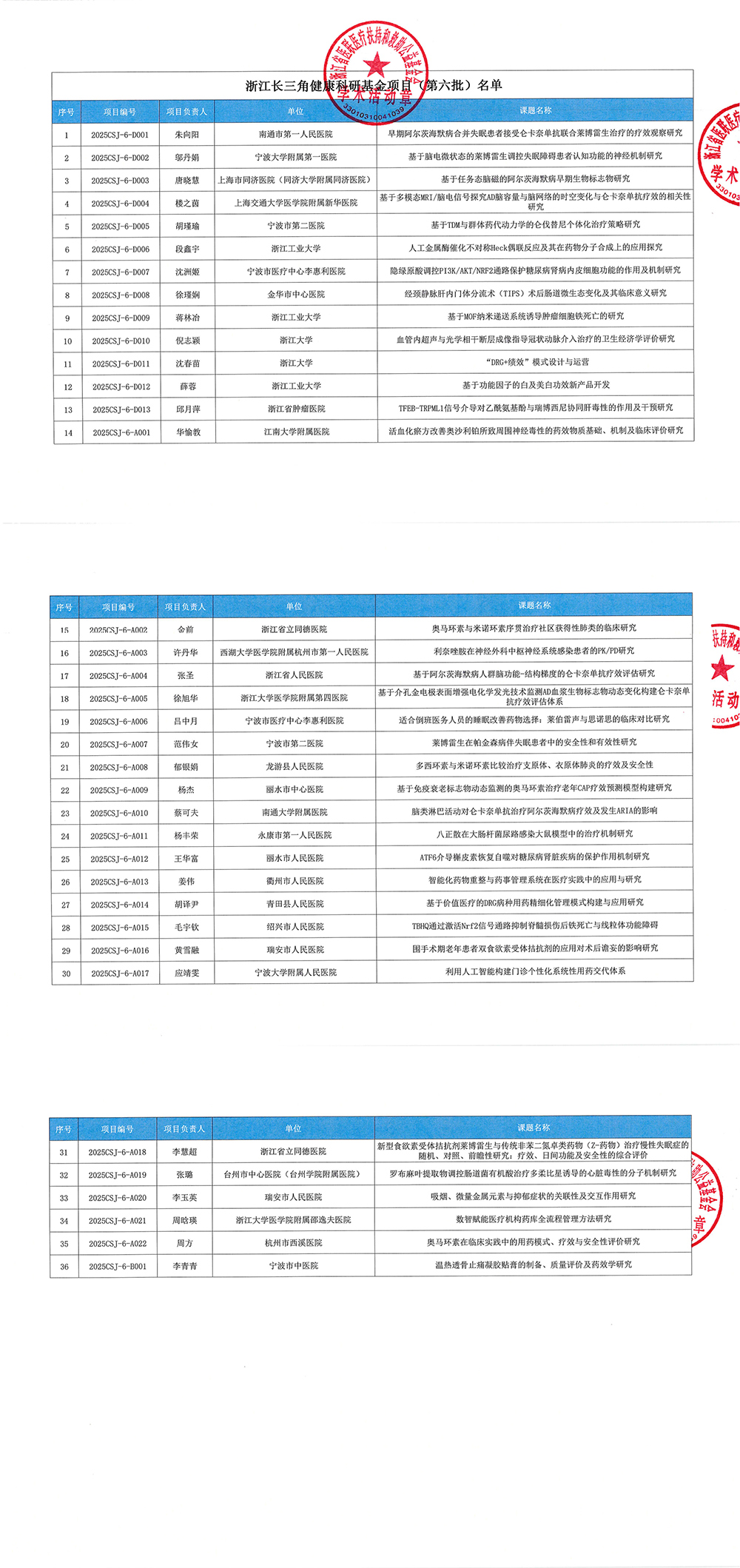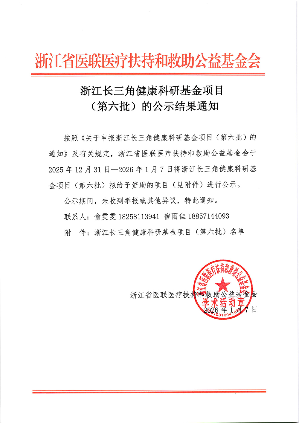 浙江长三角健康科研基金项目(第六批)的公示结果通知.pdf