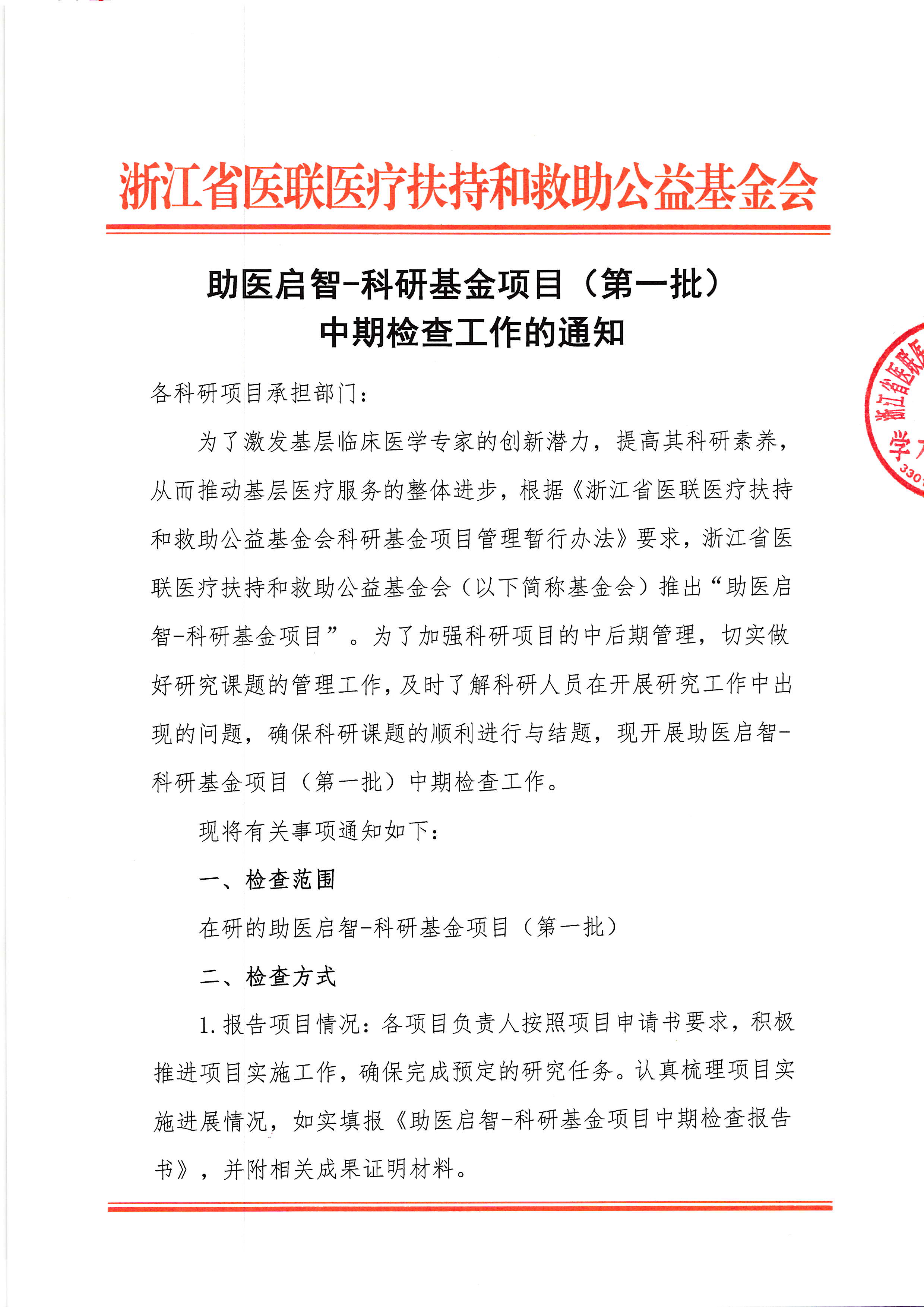助医启智-科研基金项目(第一批)中期检查工作的通知